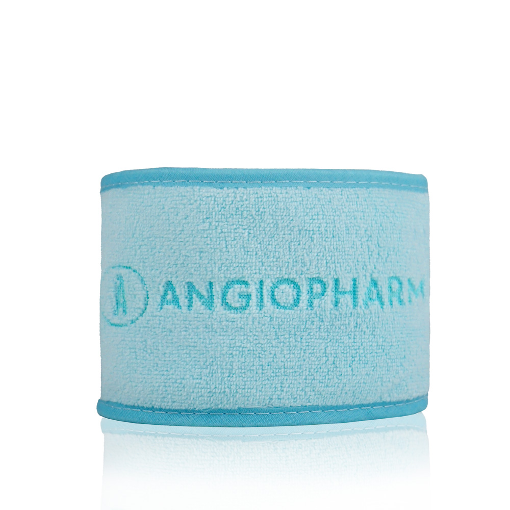 Сиреневая двухсторонняя повязка с логотипом ANGIOPHARM из махры.