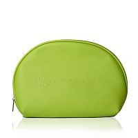 Легкая косметичка с логотипом ANGIOPHARM на молнии с одним отделением. Выполнена из экокожи с подкладом, внутренние швы обработаны и закрыты.
