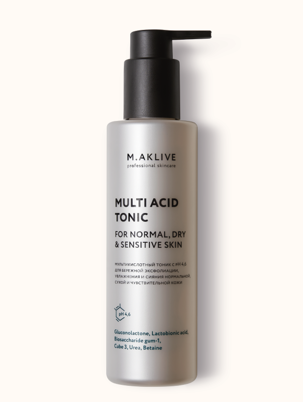 - Лактобионовая (PHA) кислота в составе тоника, благодаря большому количеству гидроксильных групп, хорошо притягивает и удерживает влагу в коже, повышая гидратацию эпидермиса, а особенности ее строения делают ее подходящей даже для очень сухой и чувствительной кожи. Обладает антиоксидантными свойствами, придает коже более ровный тон и свежий вид.