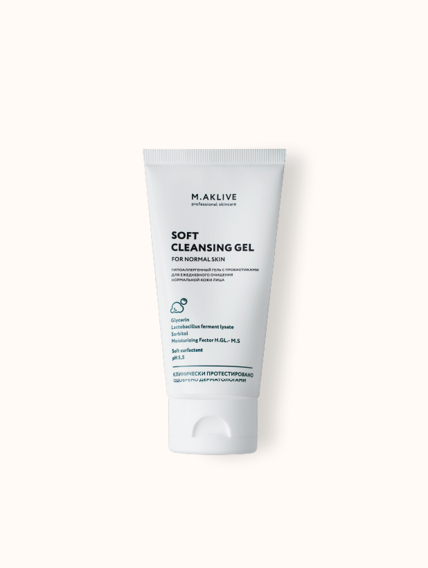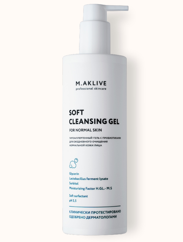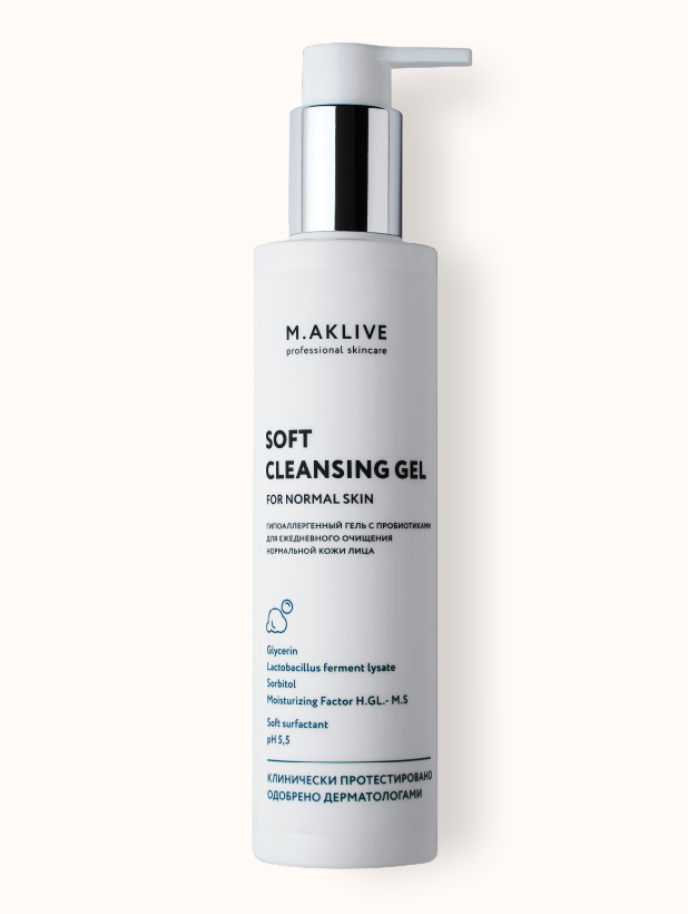 Гипоаллергенный гель с пробиотиками для ежедневного очищения нормальной кожи лица.